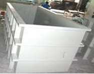 玻璃鋼貯槽、貯罐、水泥池襯里及金屬外殼的玻璃鋼襯里(或外復(fù))采用耐腐蝕樹(shù)脂和玻璃纖維表面氈作防腐蝕層,以不飽和聚酯樹(shù)脂和中堿玻璃纖維布作加強(qiáng)層,耐腐蝕性高。強(qiáng)度好,使用壽命長(zhǎng)。廣泛用于電力,冶金、石油、化工、印染、機(jī)械、環(huán)保等行業(yè)的儲(chǔ)罐、酸洗槽、離子交換器等設(shè)備。